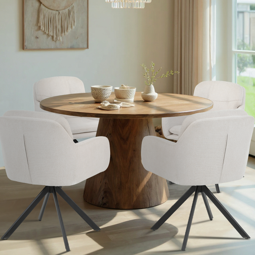 La Nicolas est conçue pour le confort : un coussin d’assise extra doux et une coque ergonomique soutiennent parfaitement le corps. Le piètement en métal noir en forme de croix apporte une touche moderne et garantit une stabilité optimale.